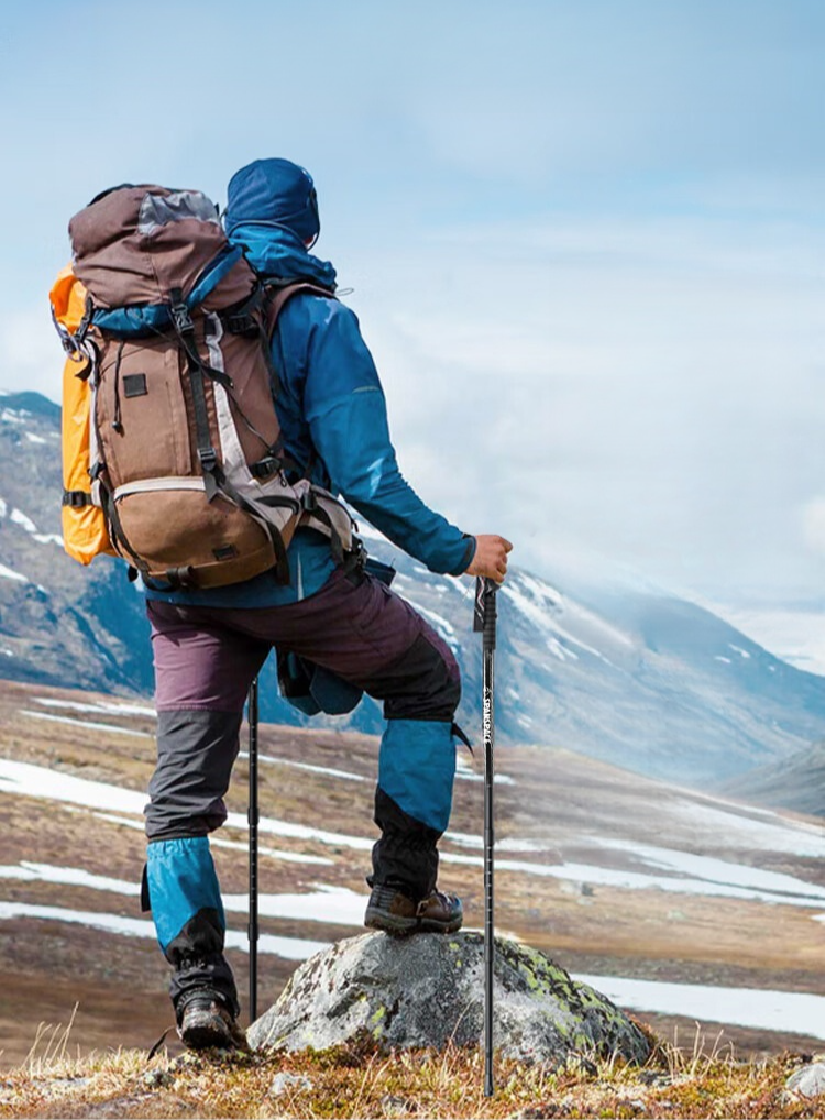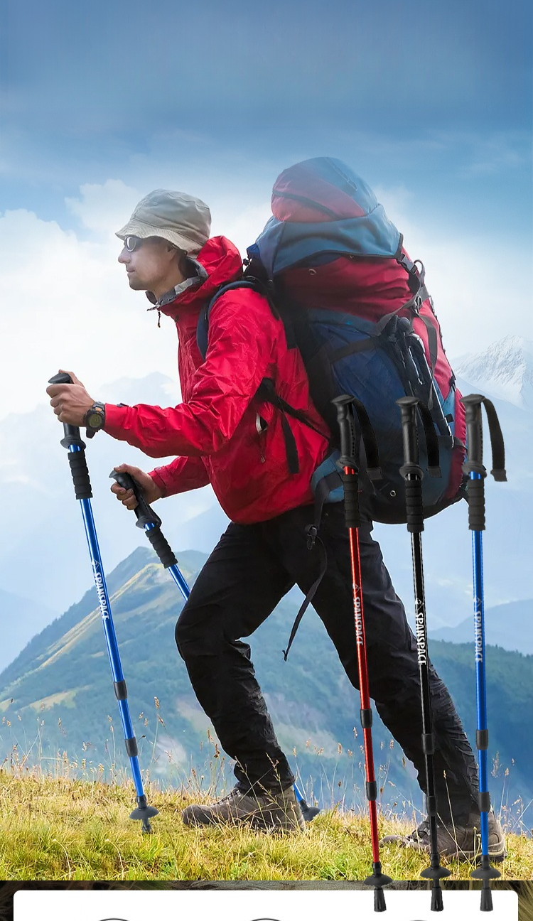 ไม้เท้าปีนเขาโลหะผสมอลูมิเนียมกันลื่นลดแรงกระแทกแบบยืดหดได้