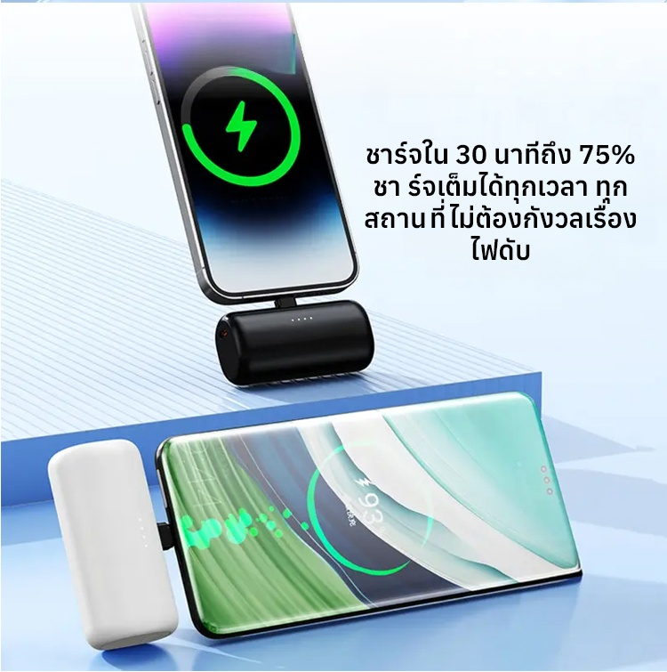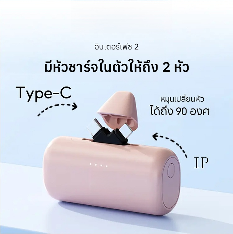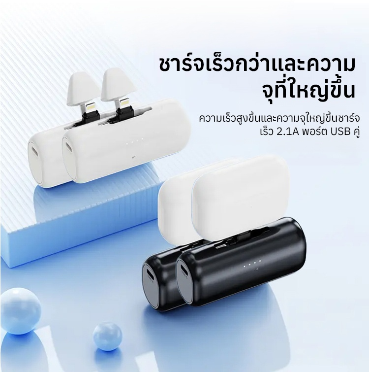 【ชาร์จเร็วในตัว ไม่ต้องใช้สาย】แบตเตอรี่พกพาแบบแคปซูลหมุน